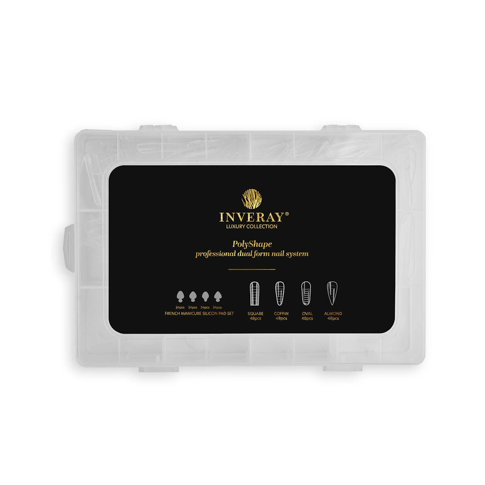 INVERAY PolyShape dual konice, so namenjene podaljševanju nohtov z akril gelom. Konice odigrajo vlogo šablone, ki jo po strjevanju pod lučko odstranimo, na nohtih pa ostane lepo oblikovan PolyShape akril gel.