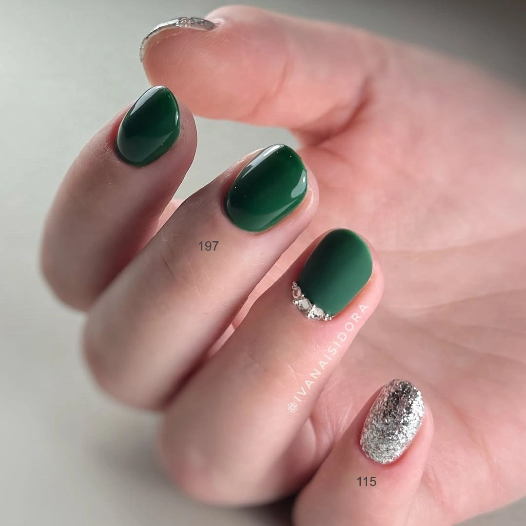 Inveray gel lak 115 - eleganten srebrn odtenek z bleščicami (drobnimi koščki). Nanesen v dveh plasteh prekrije nohte. Lahko ga uporabite tudi kot popestritev čez klasične odtenke, v eni tanki plasti.