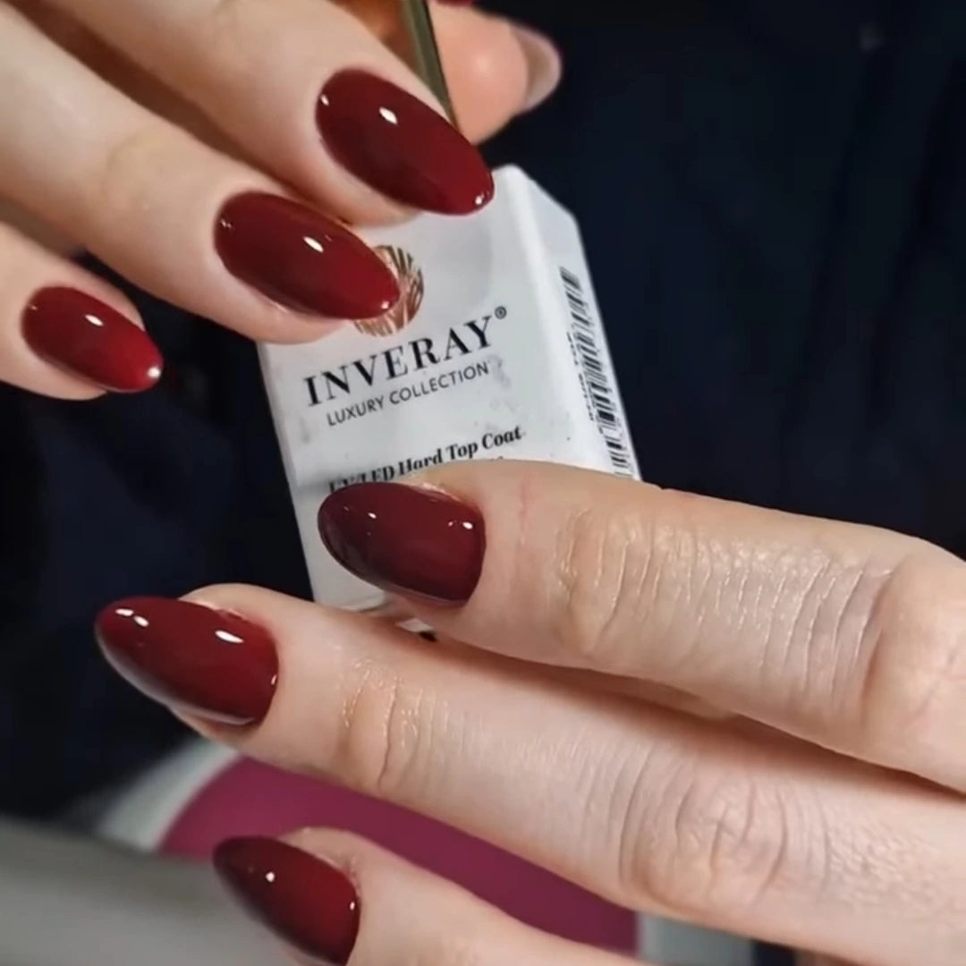 Inveray gel lak 102 - temno rdeč odtenek. Ko ga nanesete v eni tanki plasti ima minimalni vijola podton. V dveh plasteh je bordo rdeč.