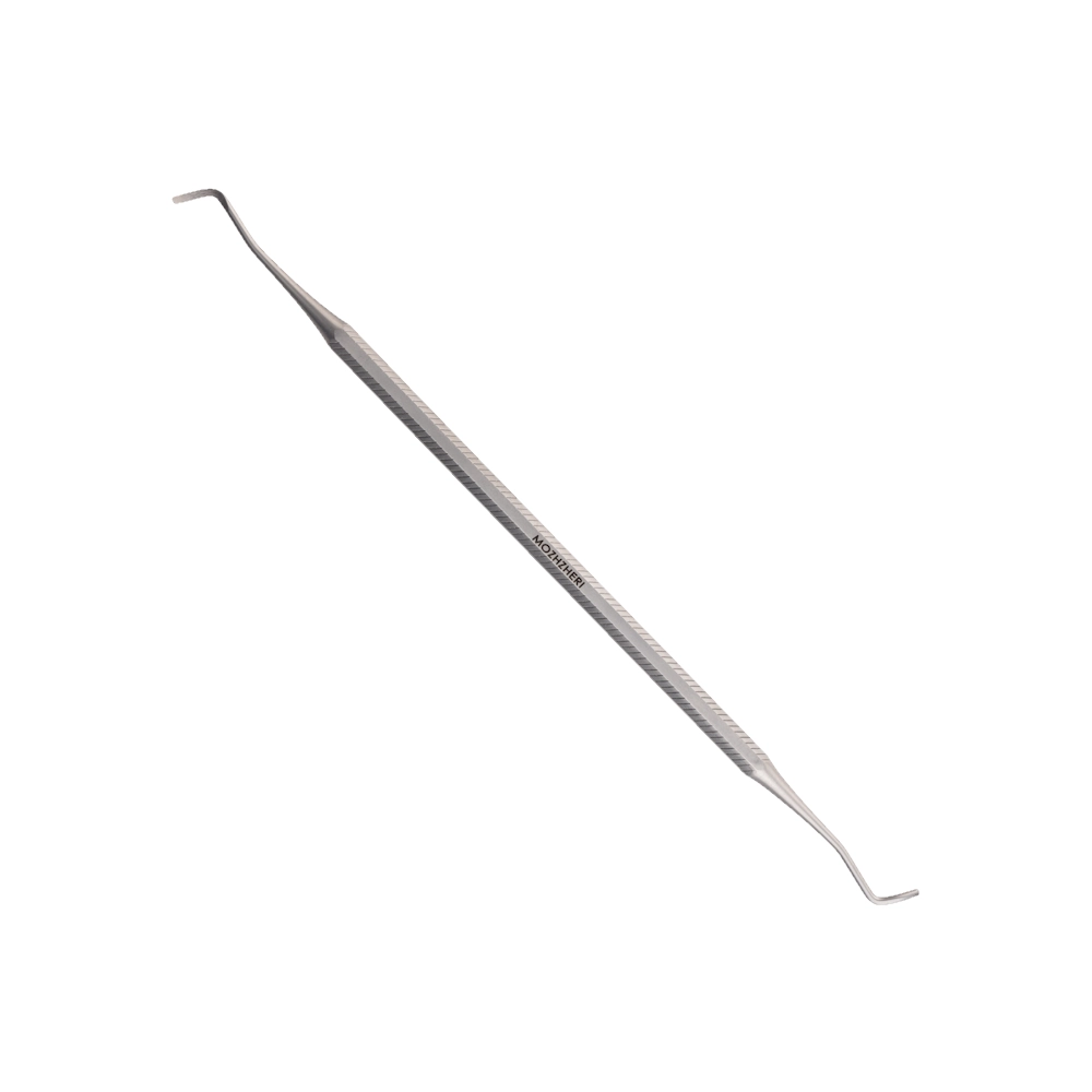 Profesionalni dvostranski eskavator za pedikuro. Primeren za uporabo pri vraščenih nohtih, za natančno čiščenje nohtnih kanalov ter prostih robov nohta, tudi za odstranjevanje suhih delov žulja. Anatomsko priročna oblika pomaga pri enostavnem rokovanju in ne drsi.