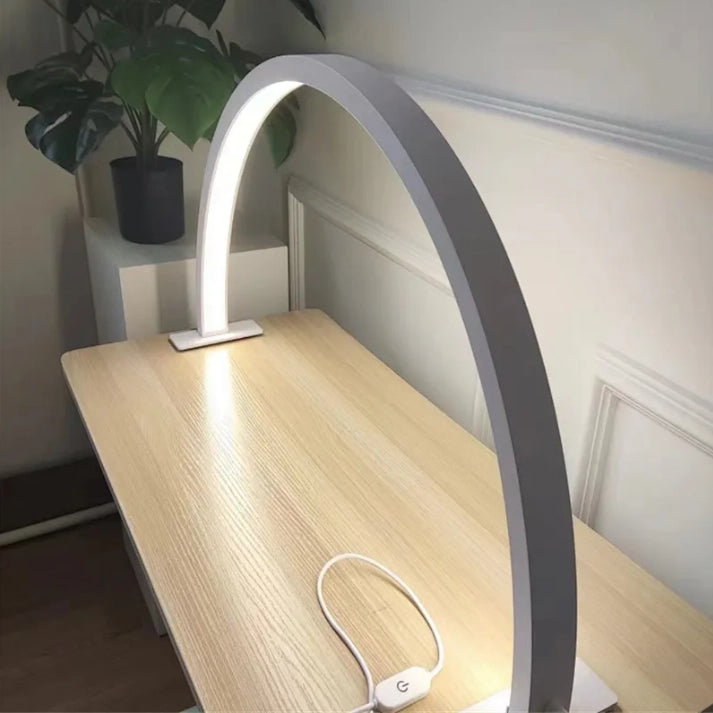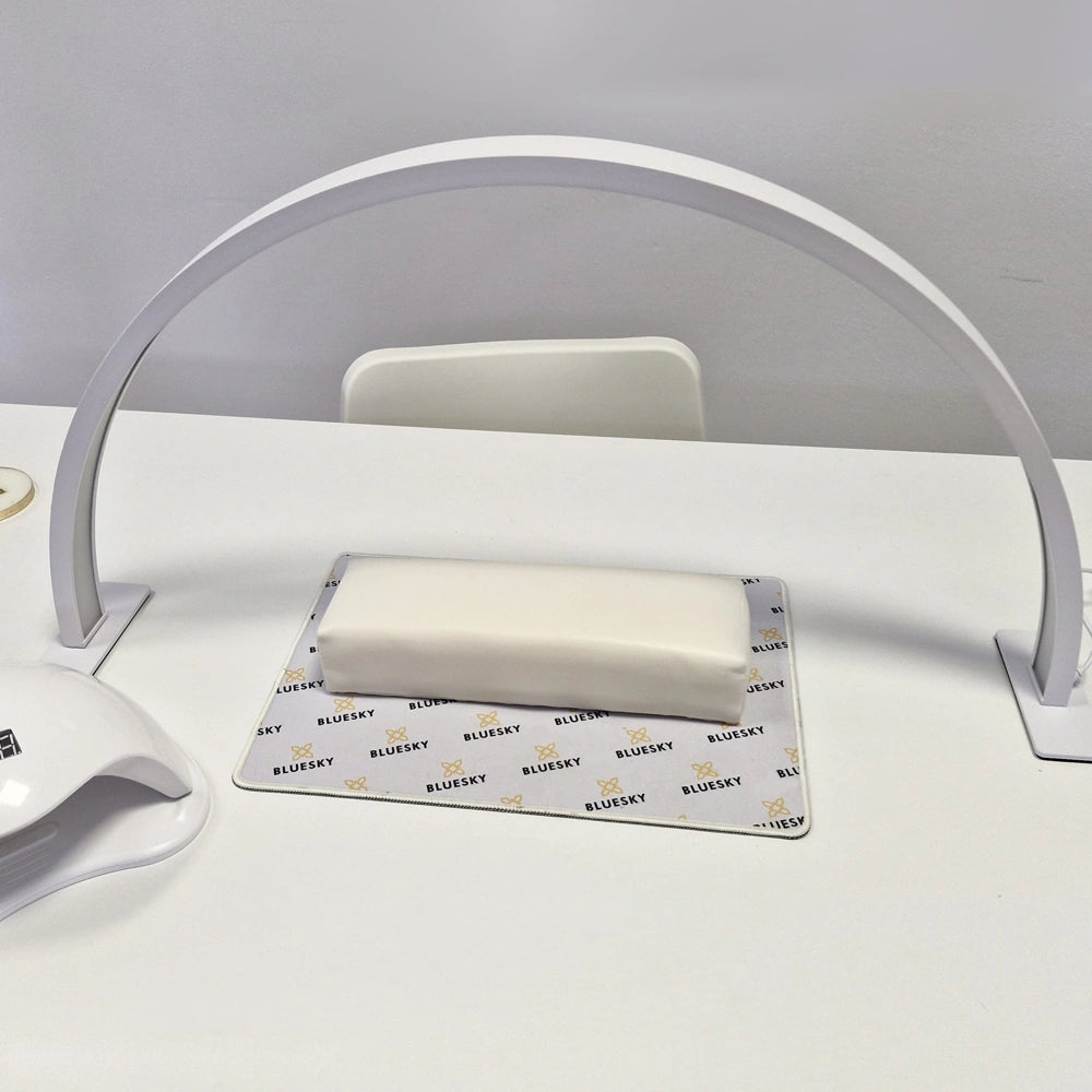 Bela namizna lučka v obliki pol lune, ki ustvari prijetno in svetlo delovno okolje za manikerke /nohtne stilistke z 180 stopinjami osvetljene delovne površine, brez senc. Zaradi praktične oblike, lahko luč enostavno umestimo v delovno okolje, lahko jo uporabimo tudi za slikanje nohtov po zaključeni manikiri, zaradi lepega dizajna polepša delovno okolje ter zaradi možnosti nastavljanja svetlobe, poenostavi delo.