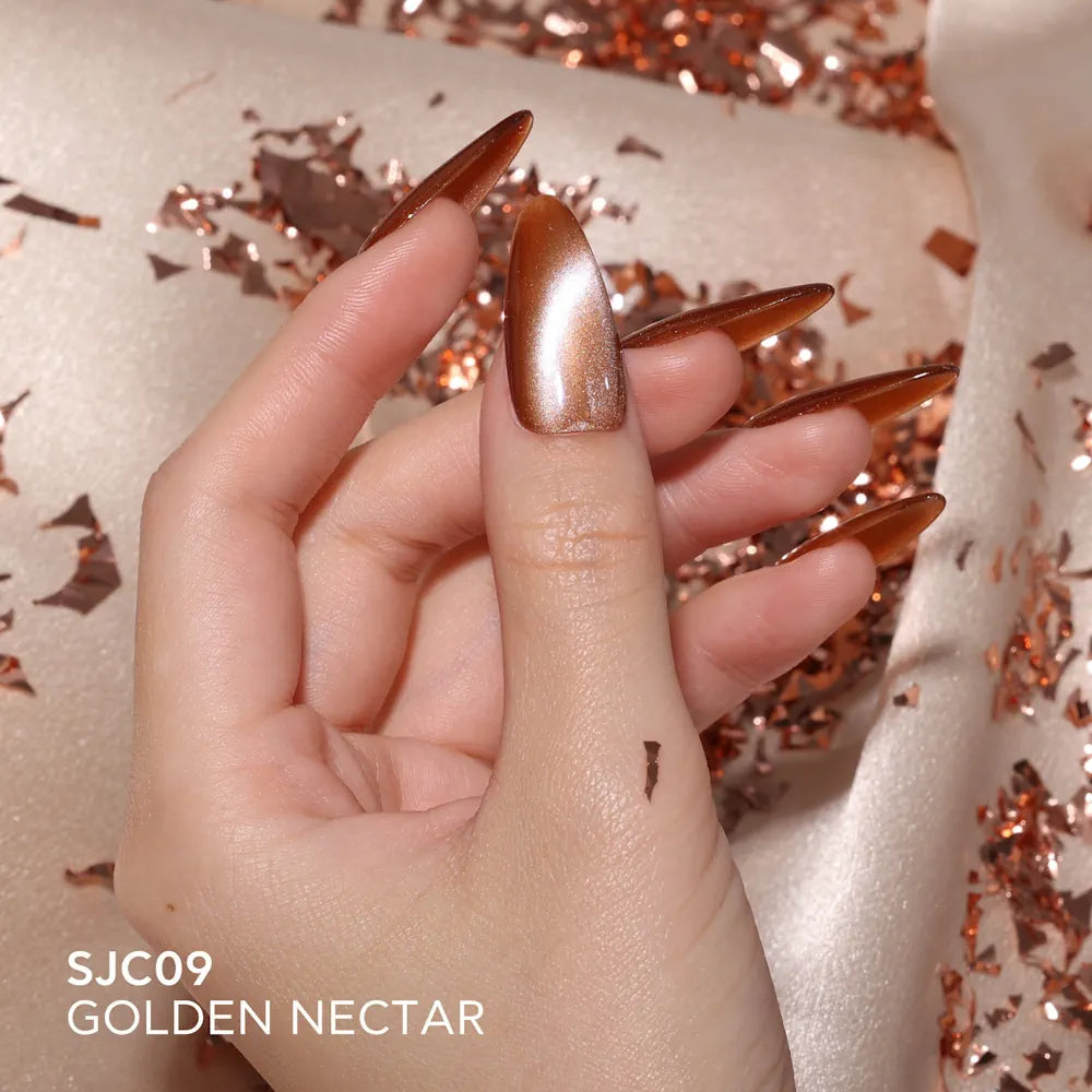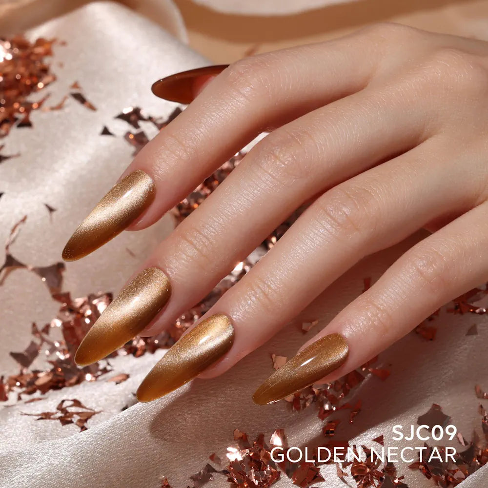 Bluesky gel lak SJC09 je magnetni gel lak bakreno-zlate barve. Z magnetom lahko ustvarimo različne vzorce.