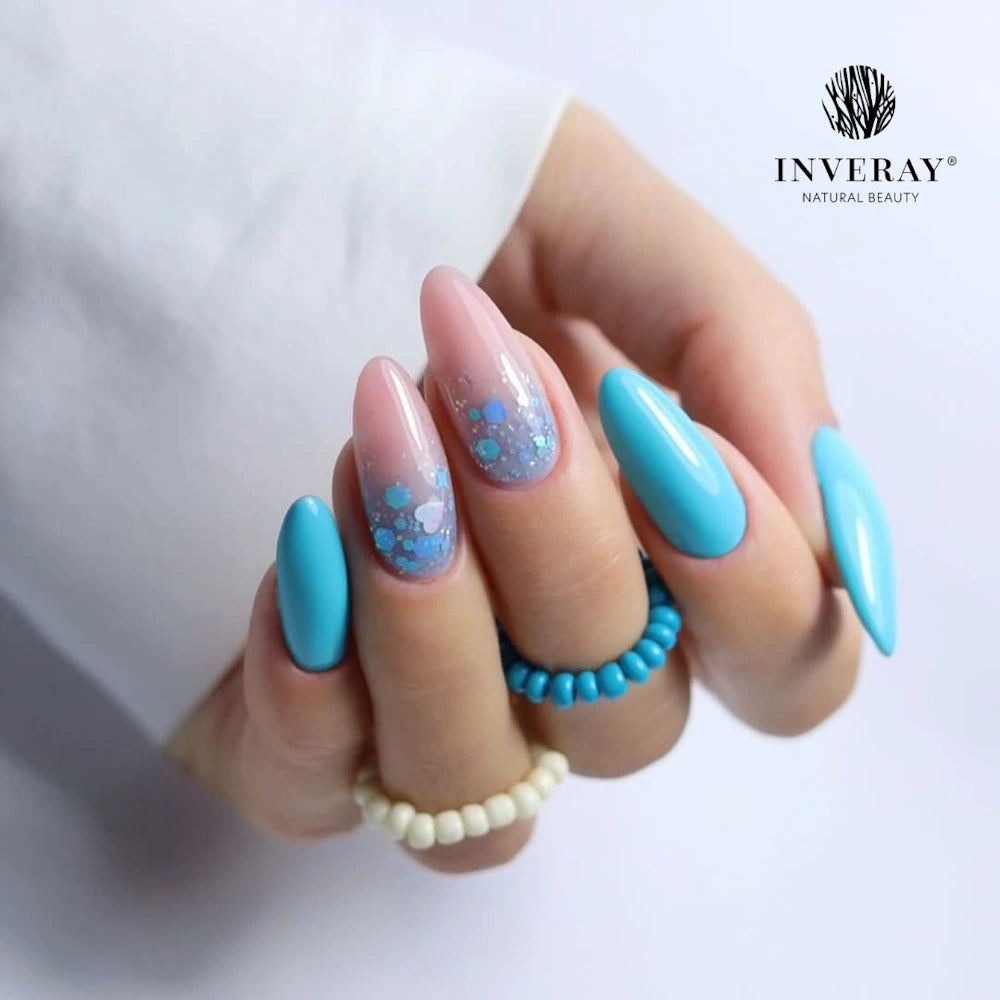 Linija gel lakov INVERAY Macaron so delno prosojni gel laki z bleščicami različnih oblik in velikosti. Gel lak je zapakiran v posodico zaradi enostavnejšega zajemanja bleščic iz posodice na nohtno ploščo. Macaron gel lak z bleščicami zajamemlo s čopičem za gel, nato lahko s tankim čopičem enostavno razporedimo bleščice po nohtu. Nanšanje je enostavnejše, saj se zaradi napredne formule bleščice med seboj ne lepijo.