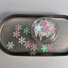 Tanka dekoracija za nohte v obliki snežinke. Snežinke so belo-roza barve, premer 8mm.