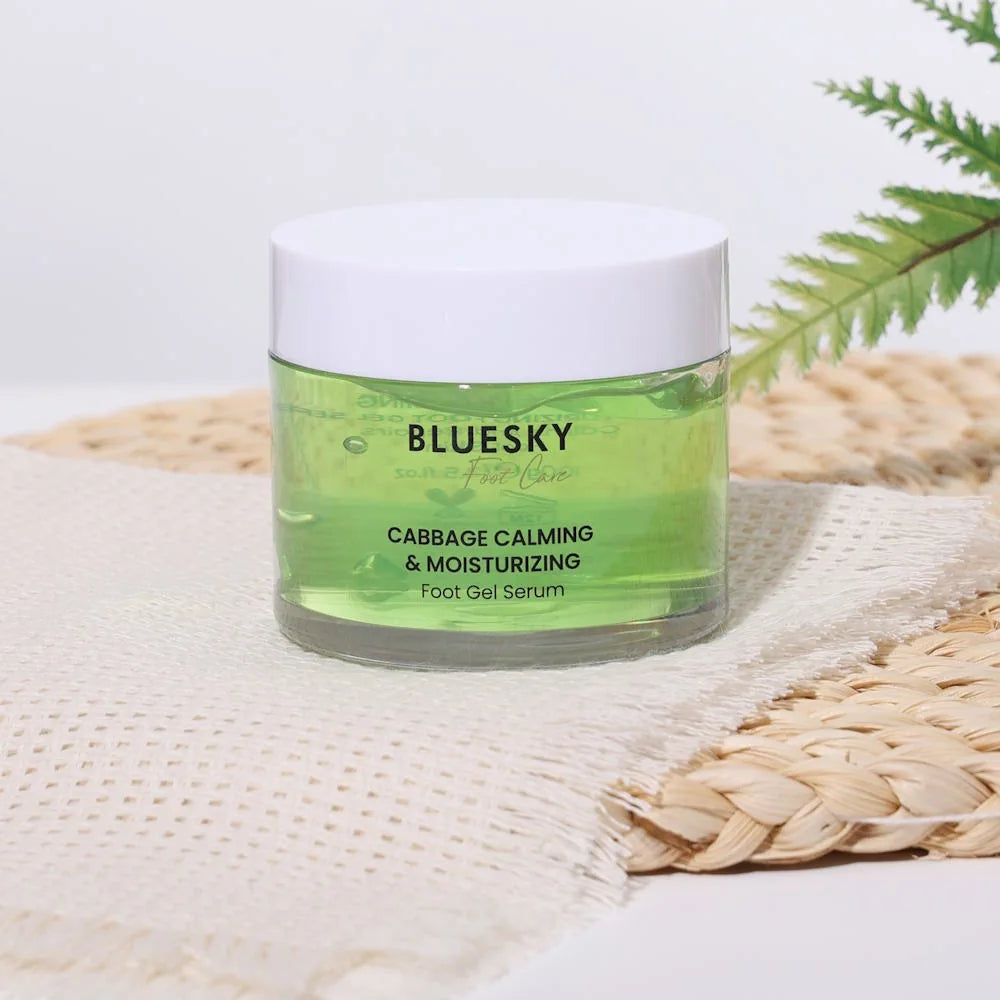 Bluesky serum za stopala vsebuje izvlečka zelja, ki je bogat z antioksidanti, vitamini in minerali ter edinstveno teksturo gela, ki omogoča, da se nežno razmaže in hitro vpije, ne da bi pustil lepljiv oz. masten občutek. Izbrano zelje in zlata kamilica delujeta v tandemu, da pomirita, navlažita in popravita srbenje na vaših stopalih, medtem ko osvežilni gel teksture brez olja poskrbi za udobje in zdravje vaših stopal.