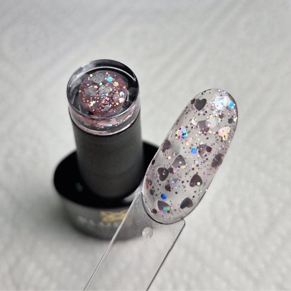 Bluesky No Wipe Top coat s srčki - Prozoren nadlak z roza bleščicami in srčki.