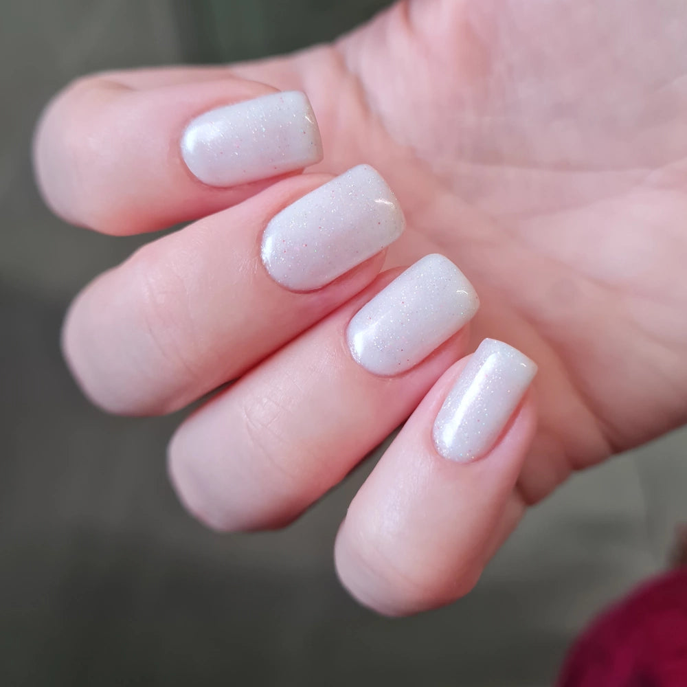 Smalto gel Bluesky LSZ05 della serie Shimmer Candy: un'elegante tonalità bianco latte con delicati piccoli glitter.