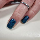 Smalto gel Bluesky 80648 - smalto gel blu glitterato. Applicato in due strati, copre circa il 70% dell'unghia naturale.