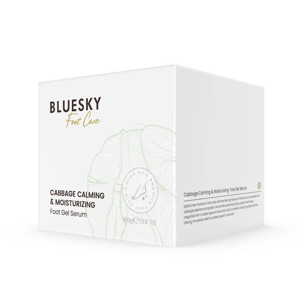 Il siero piedi Bluesky contiene estratto di cavolo, ricco di antiossidanti, vitamine e minerali, e una texture in gel unica che si stende delicatamente e si assorbe rapidamente, senza lasciare una sensazione appiccicosa o untuosa. Cavolo e camomilla dorata selezionati agiscono in sinergia per lenire, idratare e riparare i piedi pruriginosi, mentre la texture in gel rinfrescante e priva di oli garantisce comfort e salute ai piedi.