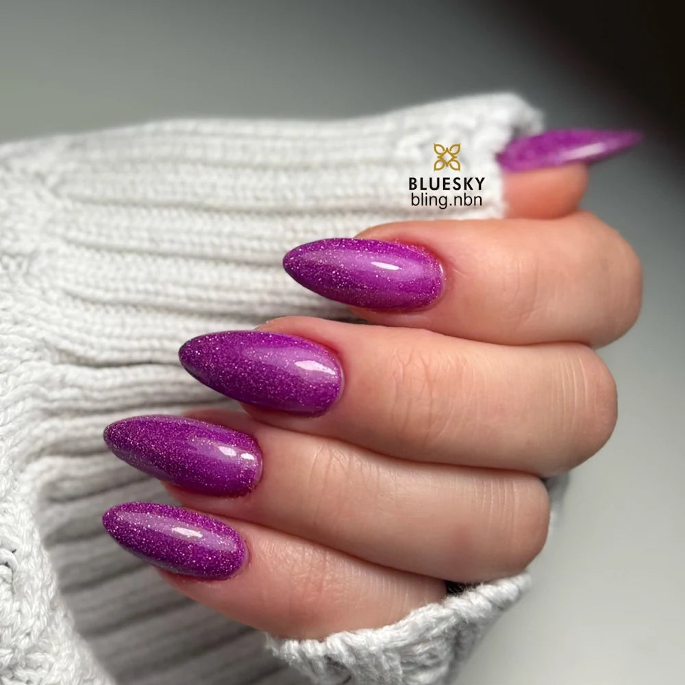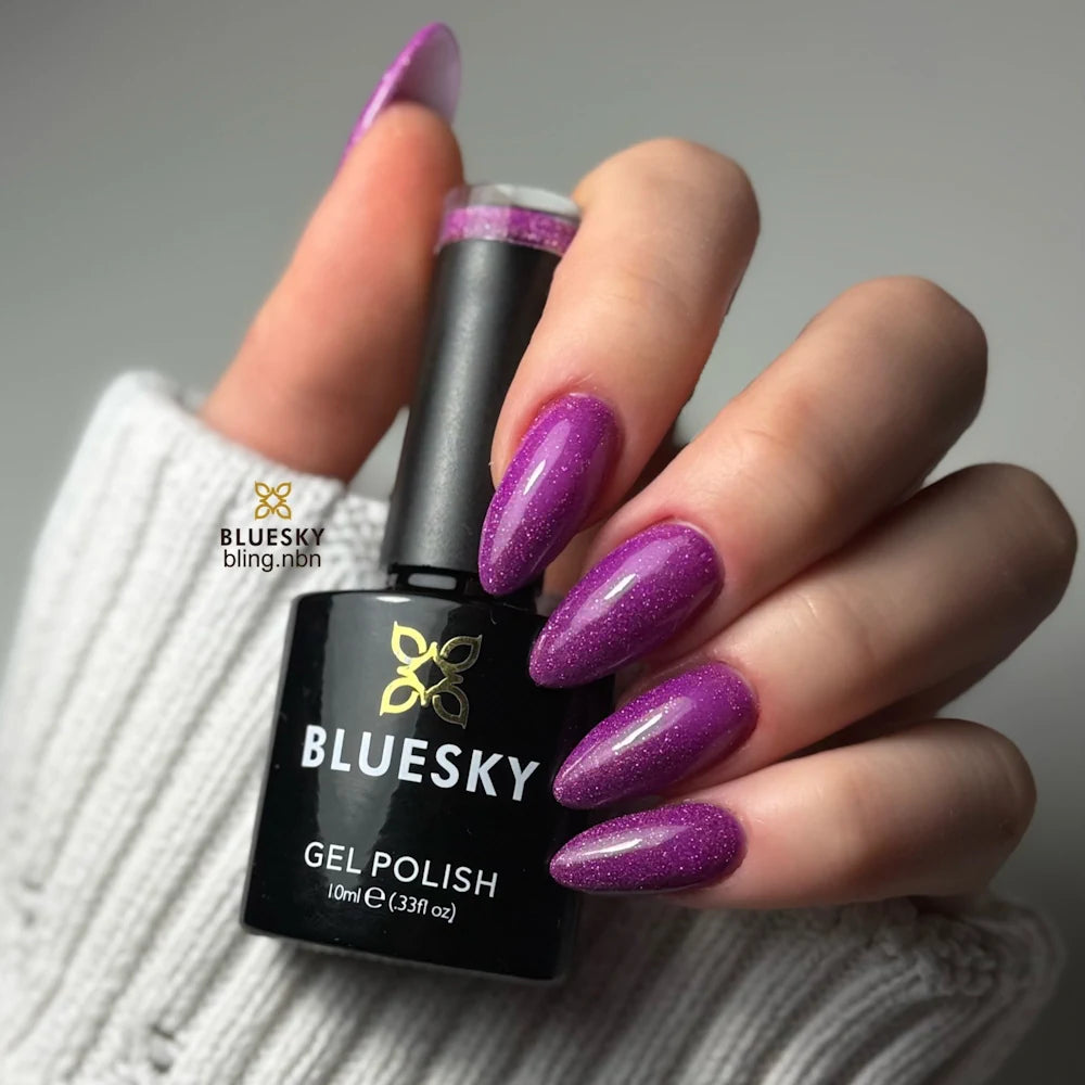 Smalto gel Bluesky Sparkle 5: tonalità viola con glitter (riflettente se applicato con il flash).