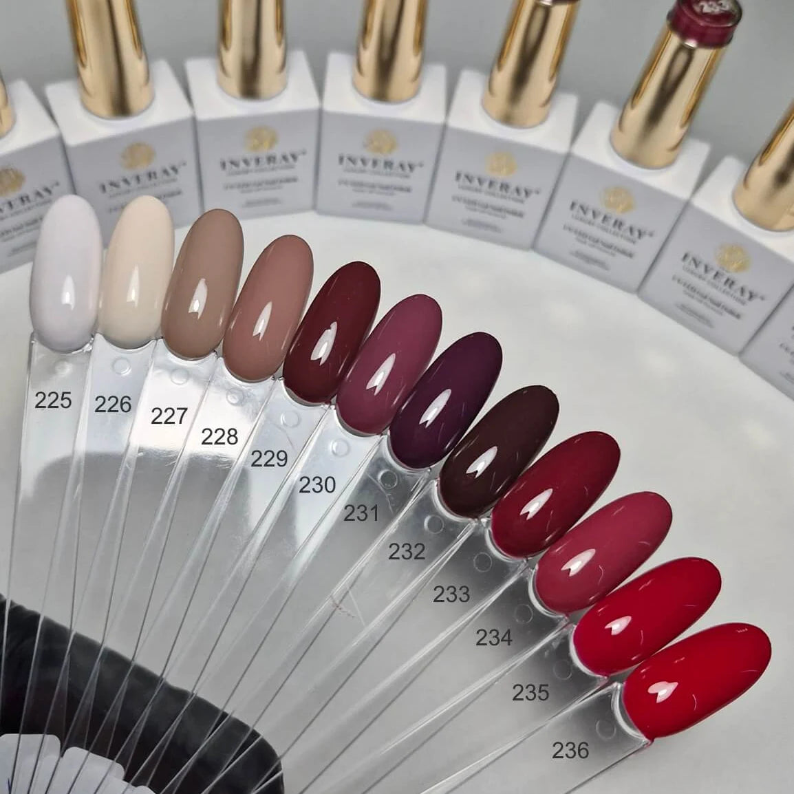 Gli smalti gel colorati/ibridi Inveray possono essere applicati su gel, acrilici, acrilico-gel e sulle unghie naturali (smalto permanente).