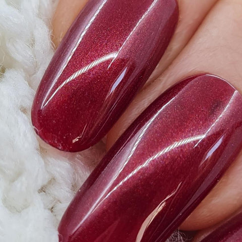 Bluesky gel lak 7419 - bordo/temno rdeč s skoraj neopaznimi biserčki, odtenek je prekriven v dveh plasteh.