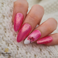 Bluesky gel lak LT073 - roza odtenek z bleščicami. Nanesen v dveh slojih, prekrije cca. 80% naravnega nohta.