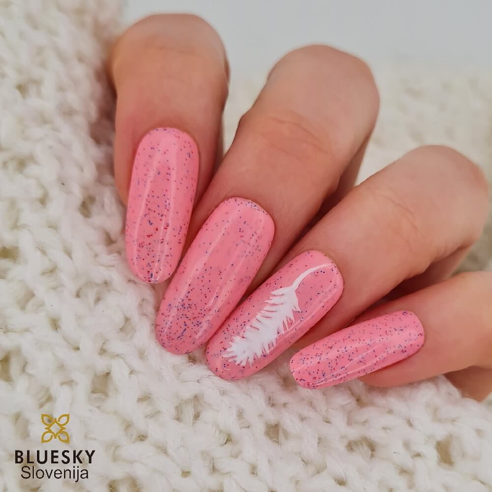 Bluesky gel lak SR18 - prekriven roza odtenek z modrimi in rdečimi pikicami.
