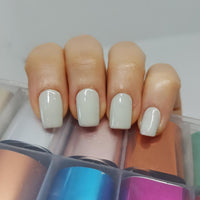 Bluesky gel lak AW2010 - svetlo siv odtenek, v dveh plasteh prekrije cca. 90% naravnega nohta.