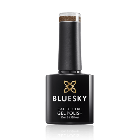 Bluesky gel lak BPC07 - Odtenek z bakreno-zlatimi bleščicami. 90% prekriven odtenek v dveh plasteh.