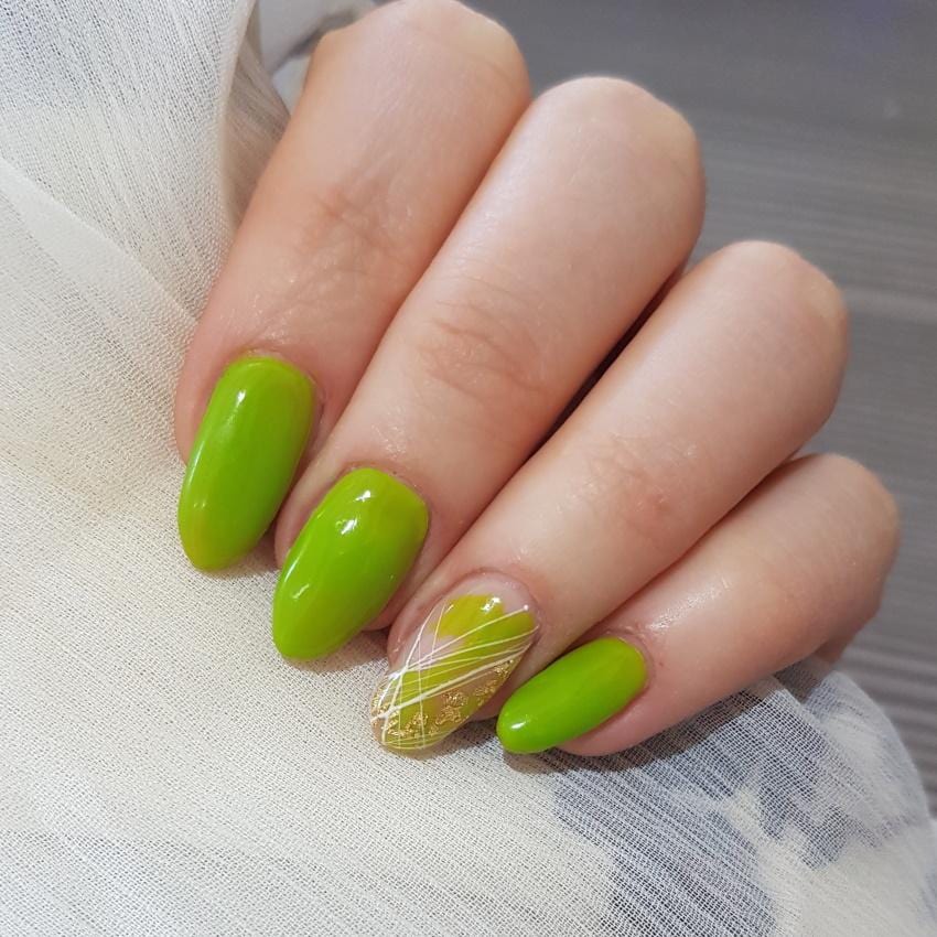 Bluesky gel lak SS2102 - zelen odtenek. Nanesen v dveh slojih, prekrije cca. 85% naravnega nohta.