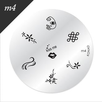 Tako natančno poslikavo je nemogoče narediti v tako kratkem času kot s to izjemno šablono! Poseben lak Konad premažete na to natančno vgravirano šablono, s strgalom odstranite odvečni lak, ter si izbrano poslikavo s štampiljko odtisnete na noht.