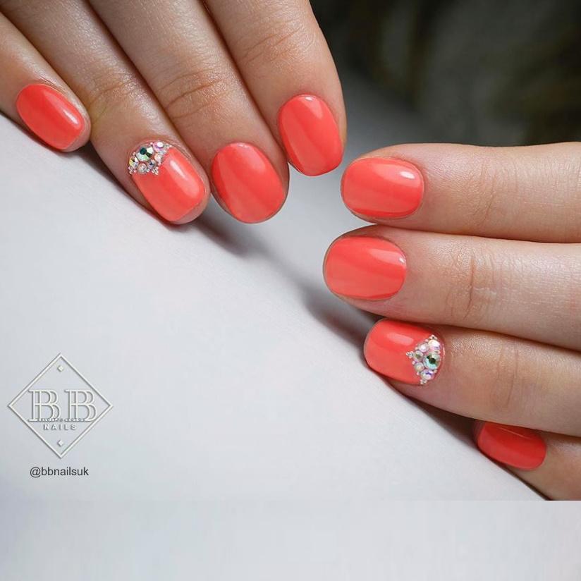 Bluesky gel lak BSH019 - 90% prekriven poleni korlno-oranžen odtenek.