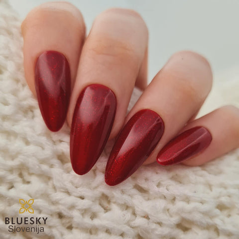 Bluesky gel lak DC19 - prekriven temno rdeč gel lak z drobnimi bleščicami.