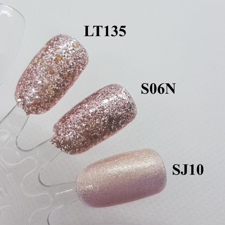 Bluesky gel lak LT135 - roza odtenek z bleščicami. Nanesen v dveh slojih, prekrije cca. 60% naravnega nohta. Odličen tudi kot tanek nanos čez klasične odtenke, kot popestritev manikire.