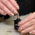 Bluesky gel lak Rose gold - roza-zlat odtenek. Nanesen v dveh slojih, prekrije cca. 80% naravnega nohta.